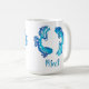 Pisces mug, bright blue on white. This beautiful mug has the word, Pisces, beautifully written with the fish swimming around. It is simple and elegant and would make a great gift for friends, family or coworkers. Check out my zodiac sign collection to see them all. Each mug is colorful and the designs are made with care.