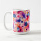 Um fluido de aquarela divertido e colorido salta a caneca de café para aproveitar o seu café a qualquer hora do dia.