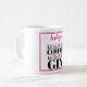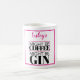 Tente seus amigos usando esta caneca personalizada. Diz: "Pode ser café, pode ser gin" e pode ser personalizado com o seu nome. O design é limpo e simples em rosa chocante e preto numa caneca branca.