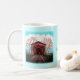 A caneca é de excelente qualidade, de bom peso e aparenta resistentência. O tamanho grande da caneca de 444 ml é muito prático, ela serve até para sobremesas. A alça é do tamanho certo para empunhadura, e oferece grande firmeza. A impressão ficou perfeita, a imagem ficou completamente nítida, e as cores vivas como na imagem do site.