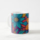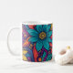 Uma caneca de café pop de arte floral colorida.