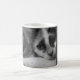 Uma fotografia de um gatinho pedindo sua atenção em preto e branco.