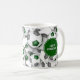 Esta equipe de futebol colorido a caneca de café apresenta um monte de bolas de futebol de tamanho variado organizadas em um padrão aleatório, tridimensional - os painéis normalmente negros das bolas de futebol foram recoloridos verde e cinzas - personalize o nome do treinador em um dos lados da caneca e o nome da equipe, o nome da escola e a estação desportiva/ano no outro - por katz _d_zynes