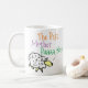 Mug para a melhor mãe. Cartoon engraçado de uma ovelha no topo de uma colina. A ovelha diz "A Melhor Mãe Baaa Nenhum". Design repete-se em ambos os lados