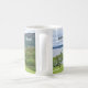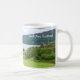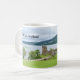 Nessie, o Monstro de Loch Ness, com "Loch Ness, Escócia" em ambos os lados da caneca. Um monstro do lago de desenho como dragão, verde-claro, com sorriso, nadando à distância a dentro de uma fotografia de Loch Ness, nas Terras Altas Escocesas, com o castelo Urquhart em primeiro plano. Bonito e engraçado presente para o aniversário ou outra ocasião de alguém e apresentando uma bela paisagem escocesa. As palavras são personalizáveis. Arte e fotografia de Letizia Morley.
