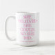 Celebre sua força, ambição e espírito com esta caneca motivacional personalizada "Ela Acreditava Que Podia, Assim Fez". Seja para a sua melhor amiga, filha, mãe, colega de trabalho, ou formando recente, esta xícara de café empoderadora inspira cada gole. Personalize com um nome ou data especial para torná-lo verdadeiramente de um tipo. Um presente pensativo para aniversários, graduações, promoções, ou qualquer ocasião que exija um poder feminino e muito café.