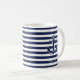 Presentes temáticos náuticos - canecas clássicas brancas e azuis-marinho personalizadas com âncora azul-marinho em faixas e texto personalizável onde você pode adicionar seu nome ou qualquer outro texto. Bonitos presentes para o aniversário, o Natal ou qualquer outro dia...