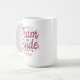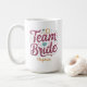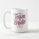 Nossa caneca de café personalizada apresenta a frase "equipe da noiva" em tipografia brilhante com elementos caprichosos em burgundy, aqua e dourado para um presente divertido para suas damas de honra celebrarem você na sua era de noiva!