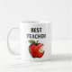 Caneca do MELHOR PROFESSOR com ilustração de maçã pintada à mão. A tipografia simples mantém o foco na identidade do professor, tornando-o uma apreciação atenciosa para um professor, educador, professor universitário, instrutor ou mentor.