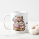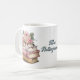 Lindo caneca de presente do professor, com trabalho de arte de livros coloridos empilhados em pastel, com rosas rosa e um par de óculos, em cima. Personalize o campo de texto azul, na frente, para uma ideia de presente de excelente para o seu professor favorito.