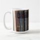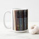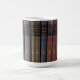 Caneca de formatura universitária fácil de personalizar com grandes livros de filósofos e autores clássicos. Para personalizar, edite o texto para adicionar o nome na lombada do livro.