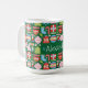 Um padrão de Natal na moda e moderno com ilustrações geométricas de ornamentos, meias, canas doces, presentes, árvores de Natal, flocos de neve, sinos e muito mais inspiradas. Isso pode ser personalizado com um nome, monograma ou sua própria mensagem. Um presente de Natal divertido e único. As cores incluem: verde, vermelho, branco, azul e rosa.