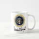 Mostre seus apoio e patriotismo ao apreciar a bebida de sua escolha com esta caneca que indica o retrato e a assinatura oficiais do presidente Donald Trump.