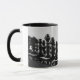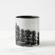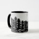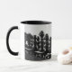 Caneca de café preto e branco do tabuleiro de xadrez e do impressão das partes