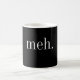 Meh do sentimento? Compartilhe de seu humor com esta caneca de café feita sob encomenda da cor/texto. A caneca caracteriza o fundo preto com o "Meh." no impressão branco. Para editar o texto ou a cor, para incorporar apenas seu texto dentro personaliza a caixa ou bate a personalização/edita o botão para editar a cor do fundo. Faz um grande presente! Aperfeiçoe para povos temperamentais, pessoas que sentem mal-humoradas, blás, deprimidas, ou cafeína deficiente. Este design igualmente disponível em camisas, e etiquetas.