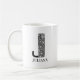 Esta moderna letra floral preto e branco J pode ser totalmente personalizada com o seu nome em ambos os lados da caneca.