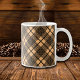 Caneca De Café Preto no Glen de Padrão de Xadrez Castanho