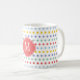 Primavera, simples e bonitinho, com um padrão de Bolinhas do arco-íris Monograma, Mug de café.