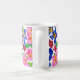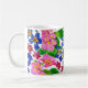 Uma clássica caneca branca de 11 oz com um padrão pintado de borras cor-de-rosa e azuis. Micro-ondas e máquina de lavar louça em segurança. Consulte também cartão de saudação, presentes e roupa.