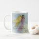 Este anjo pintou com belas asas de ouro, e está vestindo um roupão roxo. A arte está levando ao obrigado que você envia ao seu professor de CCD. Eles dão tempo para te ajudar com sua fé. Esta caneca de presentes será perfeita para informá-los do quanto você aprecia o ensino deles. Angel Trabalho de arte de Sandra Monier