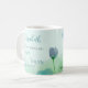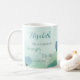 Aproveite dar a esta linda caneca de café verde-claro e azul-aquarela floral de flor silvestre com o verso bíblia do Proverbs 31:25 - "Ela está vestida com força e dignidade" a uma mulher especial em sua vida nesta temporada de férias. Isso pode ser personalizado com o nome de seu ente querido para fazer dele um presente ainda mais personalizado e apreciado.