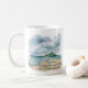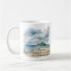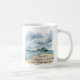 An inspirational Bible quote scripture watercolor custom mug depicting a cloudy day at the beach. It features the KJV Bible Verse Psalm 118:24 “This is the day which the LORD hath made; we will rejoice and be glad in it.” Elegant dark script calligraphy.