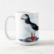 Pássaro do Atlântico Cinto, com sua típica plumagem branca e preta e bico bem colorido, parado sobre uma rocha, no oceano. Ilustração Vetor Original Copyright BluedarkArt The ChameleonArt.