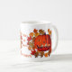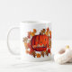 A abóbora assustadora jack-o-lanterna e as folhas de outono Dia de as Bruxas engraçado café ou caneca de chá. Você pode personalizar esta xícara e mudar ou adicionar qualquer texto que quiser, ou apagar para uma caneca simples. Por favor, visite minha galeria para ver mais cartões e presentes de Dia das Bruxas. Obrigados para passar por "Smilin' Eyes Treasures"!