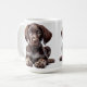 Um cãozinho alemão bonito deitado, mirando em direção ao espectador com adoráveis e dolorosos olhos. Captura um momento caloroso e pacífico de um cão brincalhão e afetuoso.
