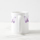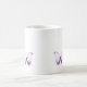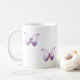 two purple butterflies on each side of a classic mug.