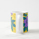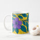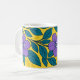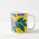 Caneca De Café Purple Flowers & Teal Leaves on Yellow Background