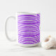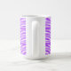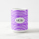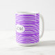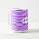 Listras horizontais púrpura e branca com uma área oval para nome ou monograma. Mostrado aqui pela mamãe. Violeta vibrante é uma cor invigorante para a rotina matinal!