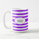 Listras horizontais grossas, roxas e brancas, com uma área oval para nome ou monograma. Mostrado aqui pela Amy. A deliciosa sombra violeta dá uma pop para a rotina matinal!