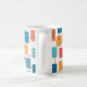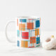 Esta caneca tem um design geométrico de quadrados na tangerina, papoila, coral e tons espalhados com suas linhas.