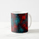 Caneca De Café Quadriculados riscados em vermelho e azul claro.