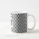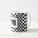 Adicione seu monograma a esta caneca com um padrão geométrico moderno, nítido, do século médio, de formas alternadas de meia-lua e quadradas preto e branco.