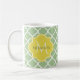 Caneca De Café Quatrefoil Verde Chic Pastel Nome Amarelo Monogram