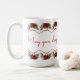 As cores branca e vermelha são ousadas e frescas nos feriados. Esta caneca tem uma borda de granadas de poinsettia vermelha brilhante no topo e no fundo. Uma mensagem divertida: "Que seus dias sejam felizes e brilhantes!" Aproveite seu café" e compartilhe um para um amigo.