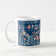 Fique entretido enquanto bebe sua bebida quente favorita com esta caneca de café ilustrada. Isso é porque esta caneca de café é na verdade um jogo de fotos escondido e divertido com 9 ilustrações de objetos familiares escondidos dentro um jardim bonito. O gráfico em verde-menta, coral e creme ou marfim é colocado sobre um fundo azul-marinho.
