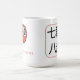 O provérbio japonês famoso de "cai para baixo 7 vezes - levante-se 8" é ilustrado nesta caneca bonita ao lado de um retrato do Daruma, monge budista japonesa que meditated por 9 anos na frente de uma parede.