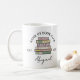 The perfect gift for the members of your book club! A coffee mug personalized with your book club's name, the name of the member, and the year your book club was established. The book club name is printed in curved text above a quirky hand-drawn stack of books with decorative spines in yellow, pink, green, and purple. The member's name is written in a hand-writing+script. Add a quote too.