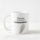 A bold mug featuring the word RADIOGRAPHER paired with a loose illustrative skeleton view of a hand. A thank you or appreciation gift for a radiographer or X-ray technologist who takes pride in the profession.