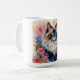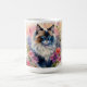 Mug apresenta uma delicada trabalho de arte de aquarela de um lindo gato boneco de pano cercado por flores em um retrato de animais estéticos femininos. O felino de olhos azuis está olhando para fora deste vibrante quadro floral.