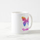 Esta caneca personalizada apresenta uma borboleta brilhante falso e fofa. Personalize-o com um nome.