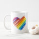 Ilustração estética do coração em cores do arco-íris feita com pincéis de tinta.