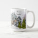 Esta caneca de café da temporada de Natal / inverno apresenta árvores cobertas de neve com uma ilustração de raposa na neve. A saudação é uma citação de Walt Whitman. Esta caneca seria um presente atencioso de Natal ou outra ocasião para qualquer pessoa