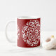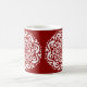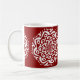 Esta mandala branca senta-se sobre um fundo vermelho escuro. A cor é profunda e quente. Parte da Coleção Kylgh Mandala.