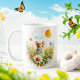 Mug apresentando um mouse aquarela em uma paisagem de primavera. Personalizável.