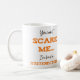 Uma ideia de presente de recuperação de procedimento cirúrgico humorístico que diz "Você não pode me assustar eu já fiz cirurgia!"