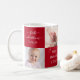 "Primeiro Natal." Uma grade divertida de 4 fotos personalizadas de sua escolha e tipografia de guiões brancos e manuscritos e flocos de neve sobre um fundo vermelho, ajuda os orgulhosos avós a lançarem no Natal e Ano Novo. Sinta o calor e a alegria da temporada de festas sempre que eles usam esta na moda e a moderna caneca de festas personalizada. Presente perfeito para a recém-orgulhosa Nana & Papa! Basta substituir as 4 fotos de exemplo por outras, digitar o nome do bebê de sua escolha e ano, e você pode personalizar facilmente esta caneca de Natal de manutenção. Por favor, me mande mensagens com quaisquer perguntas ou solicitações.